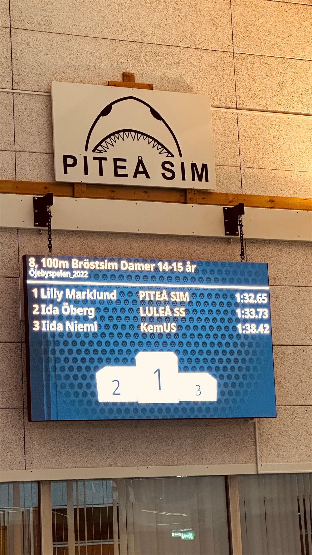 I kväll har vi testat vår nya helt grymma resultattavla för första gången! Bilden gör den inte rättvisa, knivskarp upplösning och möjlighet att till exempel visa prispallen vid prisutdelning. Sååå kul tycker vi i tävlingsgruppen!!